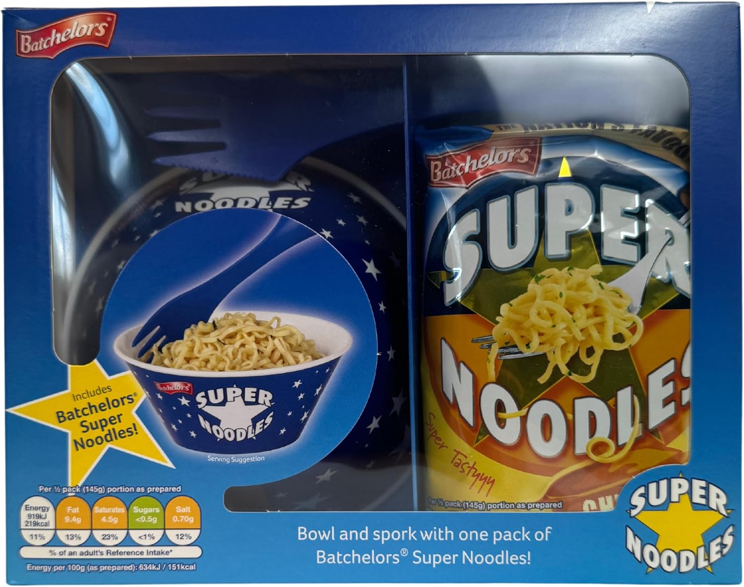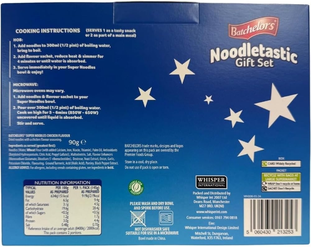 The ultimate snack kit for noodle lovers. Whether you’re gifting a student, sending a cheeky treat, or just embracing your inner carb-craver, this Super Noodles set delivers. It includes a reusable bowl, spork, and — of course — a classic pack of Super Noodles.